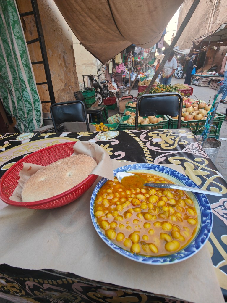 I got an early night and the next day was basically the only day when I’d be able to explore Fes, as I was only staying two nights. My Couchsurfing host had said he’d be busy during the day but that we could meet up to hang out in the evening. I looked on Google Maps and decided to go on quite a long walk (like 40 minutes) to a place called the Marinid Tombs, but I stopped off to get some bissara (bean soup) for breakfast on the way.